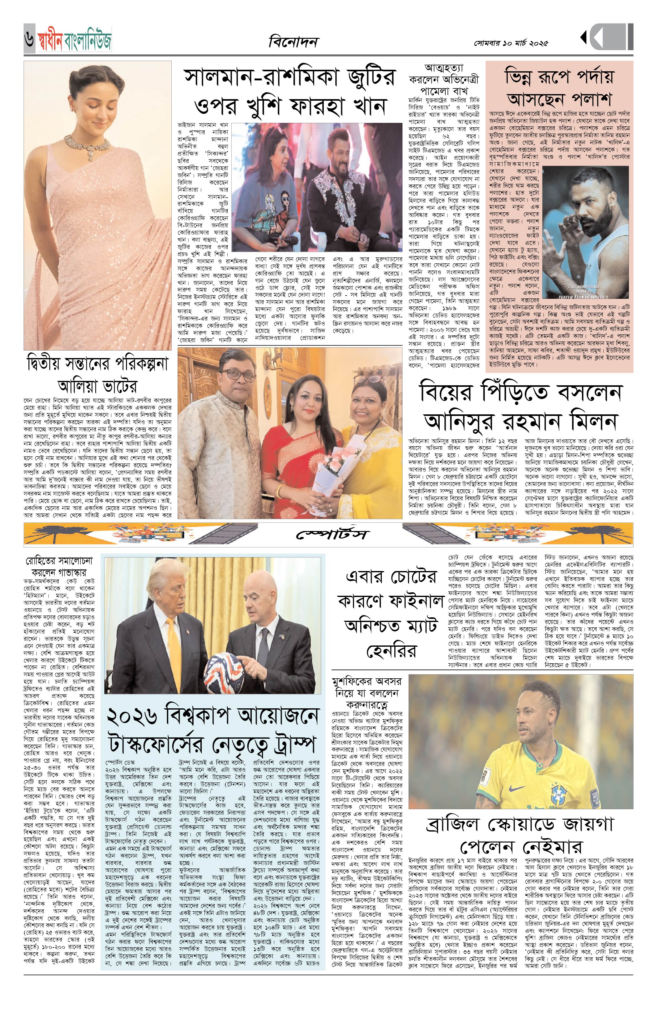 সকল পাতা « < ১২৩৪৫৬৭ > » পুরোনো সংখ্যা আজকের পত্রিকা → প্রথম পাতা→ ২য় পাতা→ ৩য় পাতা→ ৪র্থ পাতা→ ৫ম পাতা→ ৬ষ্ঠ পাতা→ ৭ম পাতা → শেষ পাতা অনলাইন সংস্করণ